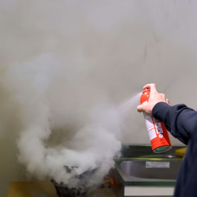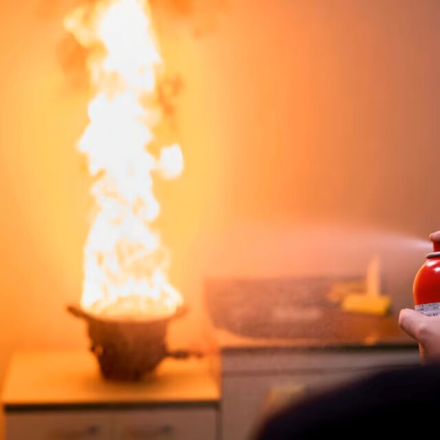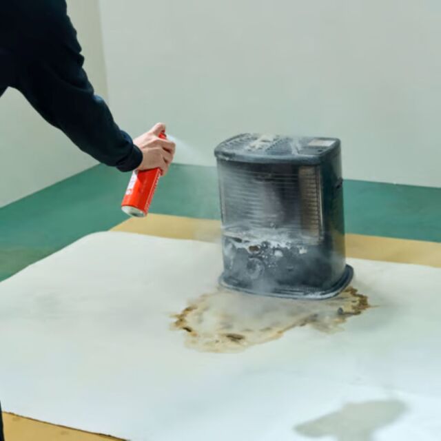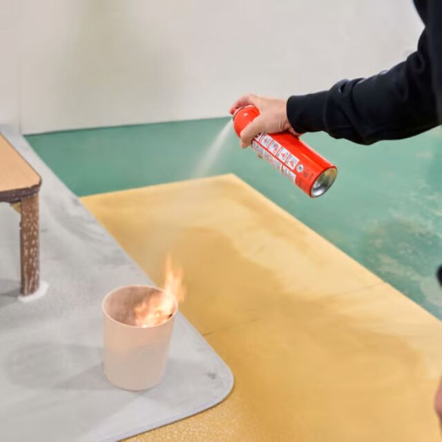 消火器は、仕組みや操作手順を理解していないと噴射できない可能性がありますが、FIRE OUTは殺虫剤やヘアスプレーと同じ使い方で、初期消火が可能です(キャップを外して、火元に向けてボタンを押すだけ)。